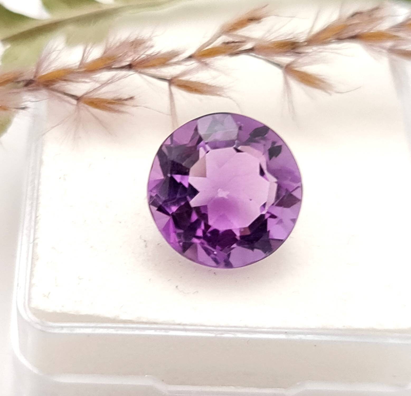 Echter violetter Amethyst rund facettiert lila 13mm 7,9ct (Nr.992)