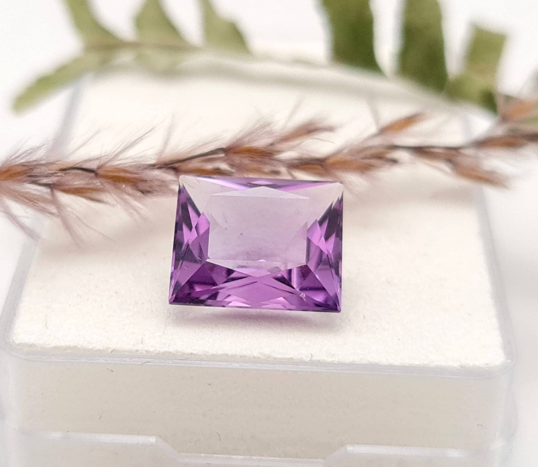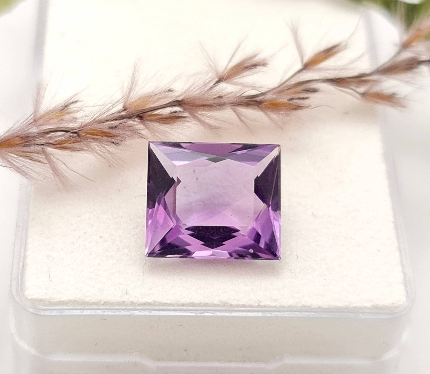 Echter violetter Amethyste lila Rechteck facettiert 12x10,5mm 5,5ct (Nr.933)